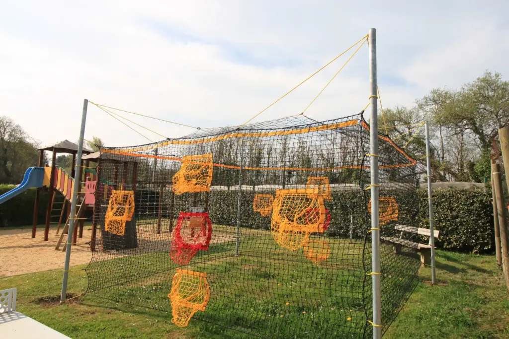 Dédiée aux enfants de 2 à 10 ans notre aire de jeux comprends une structure multi-jeux équipée d’un toboggan, une barre de pompier, un filet à grimper, 2 tourelles reliées avec une passerelle et mur d’escalade. 2 jeux à ressorts et 1 jeu à bascule sont également à disposition.